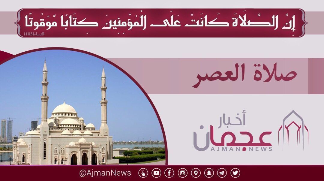 أخبار عجمان Pa Twitter حان الآن موعد أذان العصر 03 42 م حسب التوقيت المحلي لمدينة عجمان وضواحيها الإمارات Ajmannews