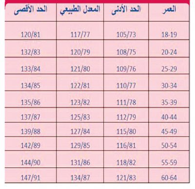 جدول قياس ضغط الدم المنخفض لمختلف الأعمار والجنسيات العنود عنود الحياة